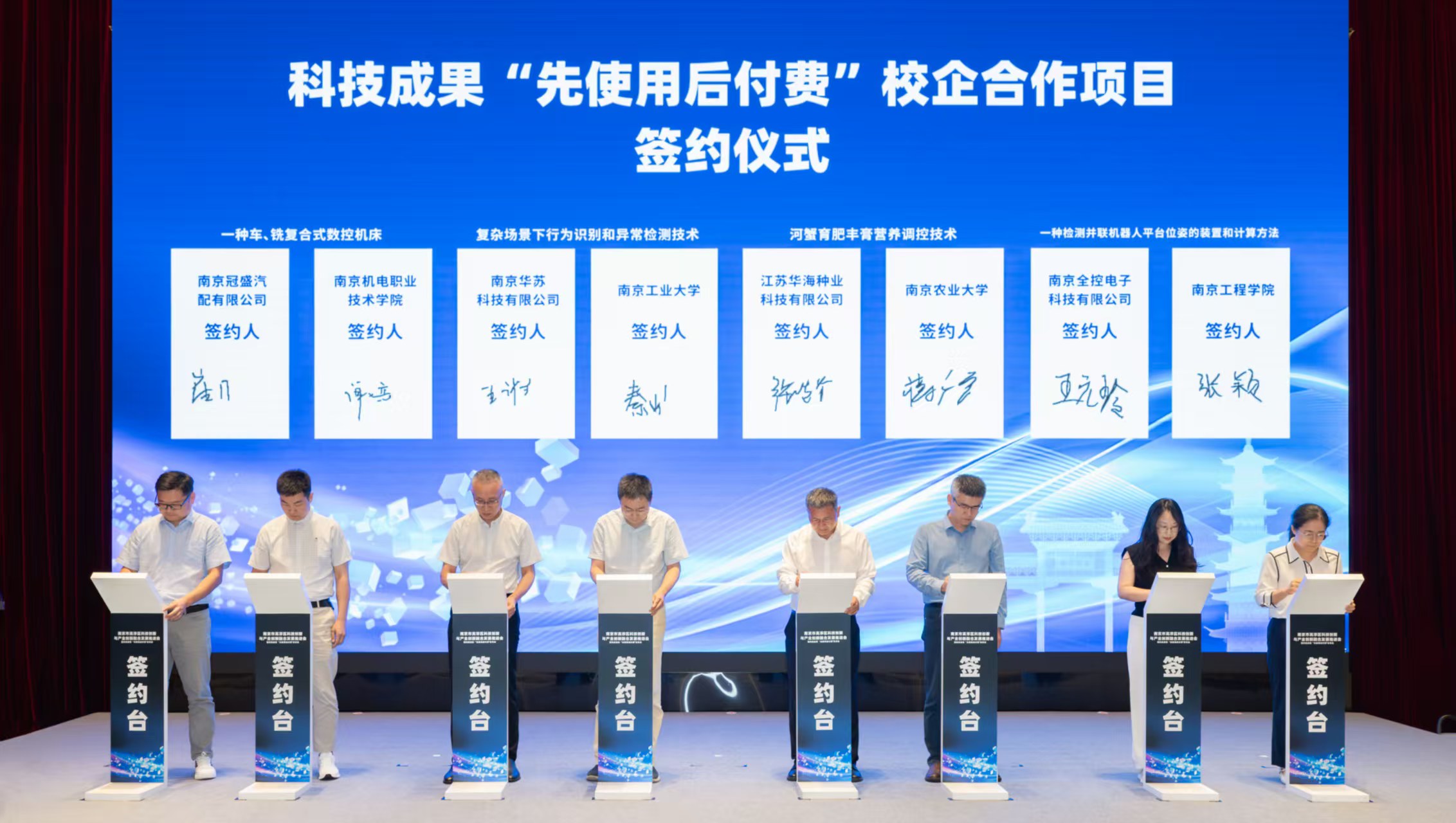 会上高淳区发布《关于促进科技成果转化加快发展新质生产力的若干政策措施(试行)》涵盖4部分共12项行动,为科技产业创新提供全方位支持。顾学红受邀上台与参会嘉宾共同启动高淳区科技成果“先使用后付费”试点工作。在合作签约环节,周治代表学校与高淳区签署了联合技术转移中心共建协议,高淳区政府副区长孔和云向颁发科技成果转化专员聘书,为推动后续合作提供了机制保障。我校计算机与信息工程学院成果项目作为首批“先使用后付费”项目与高淳企业成功签约。