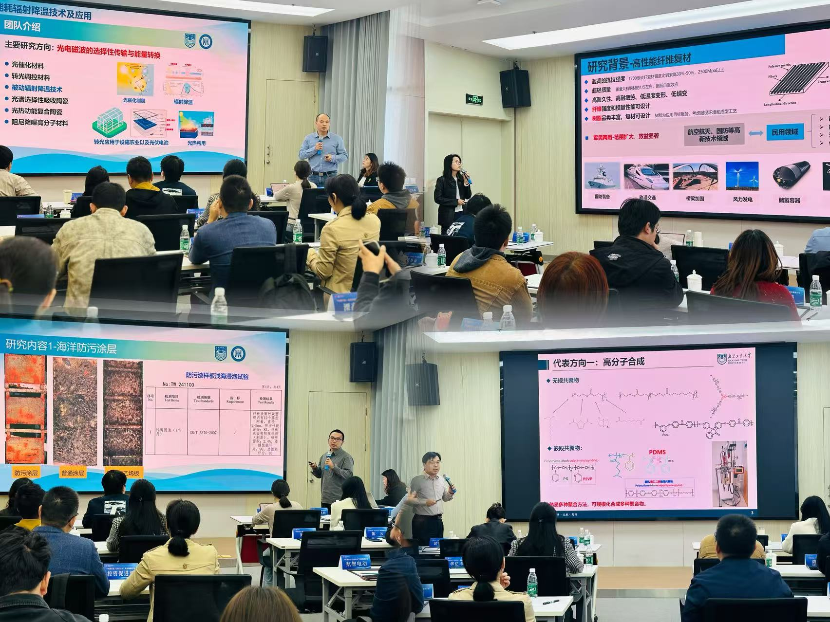 本次活动聚焦产学研用深度融合,路演内容覆盖材料防护、节能降温、智能检测等多个前沿领域。我校专家团队结合各自课题组研究方向作了专题报告,并围绕核电循环水管道防污涂料、抗海洋环境紫外线老化涂层技术、有机膜及太阳能背板降温等企业关注的技术课题,与企业代表展开深入交流与探讨。