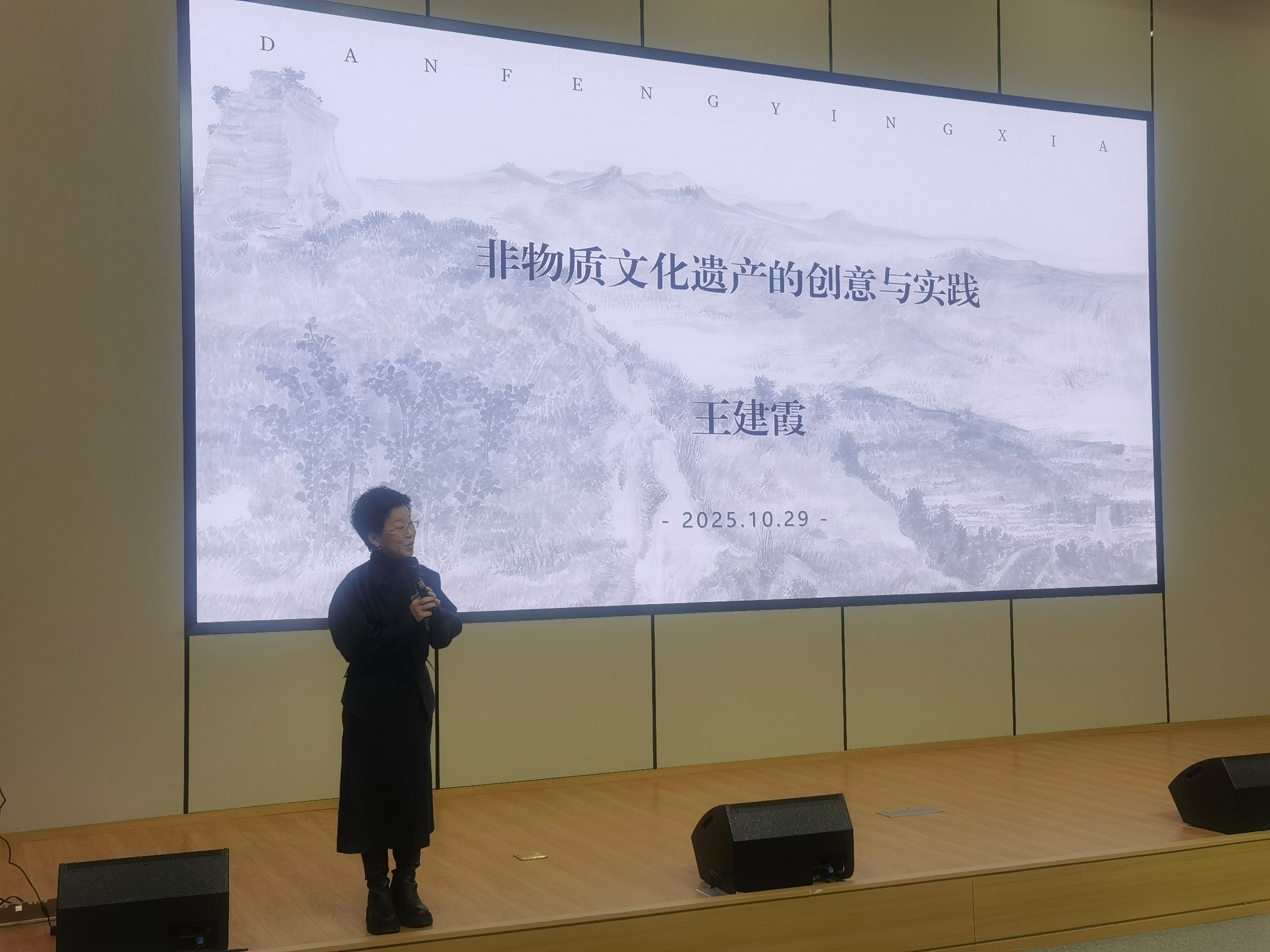 王建霞以《非物质文化遗产的创意与实践指导》为题,结合自身经验,从非遗文化价值切入,讲解其创意转化路径与实践方法,为在场学子打开非遗传承创新新思路。